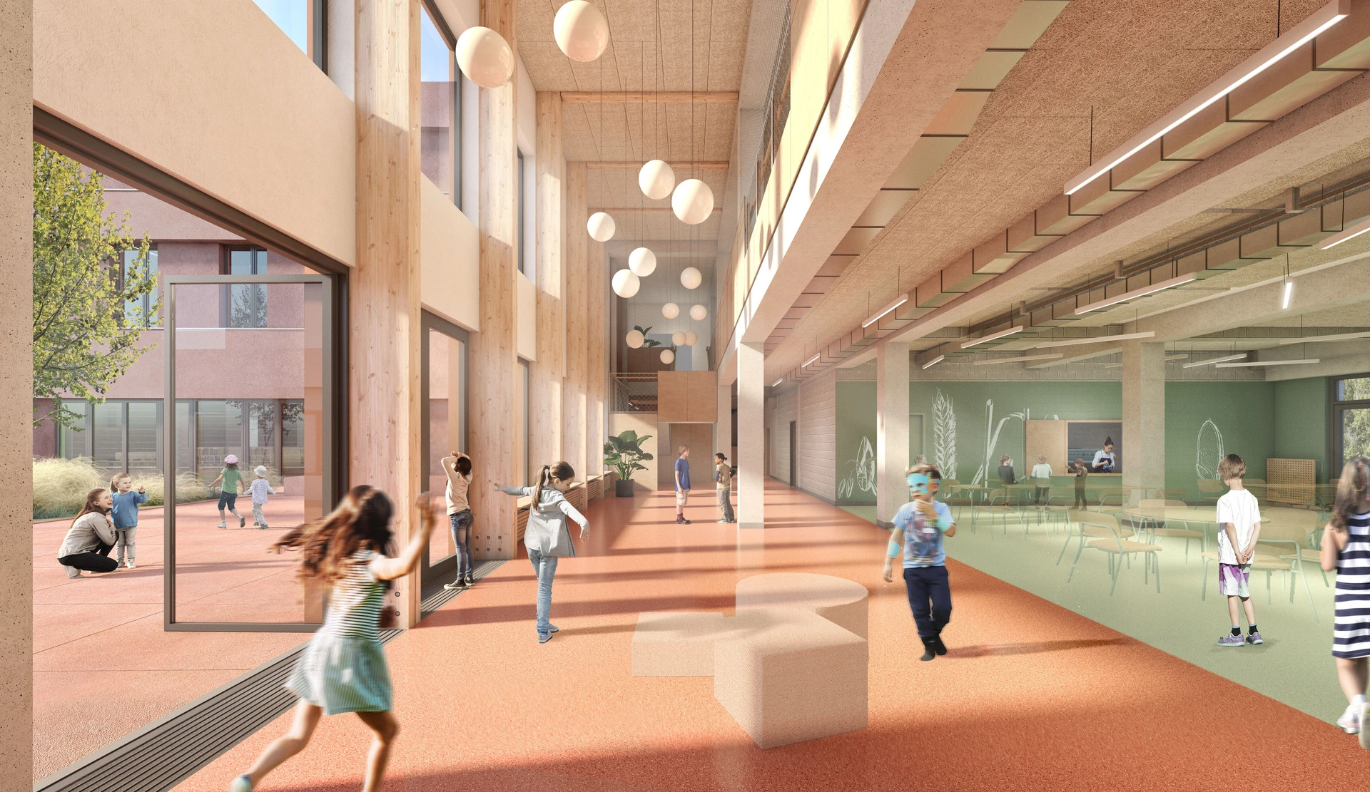 Nowa szkoła jest wyposażona w panele fotowoltaiczne, system wykorzystania wody szarej do spłukiwania toalet i podlewania roślin oraz liczniki przy umywalkach, które pokazują uczniom, ile wody zużyli do umycia rąk. Niektóre elementy konstrukcyjne oraz instalacje są wyeksponowane, aby uczniowie mogli zobaczyć, z czego zbudowana jest ich szkoła i jak działają jej systemy.