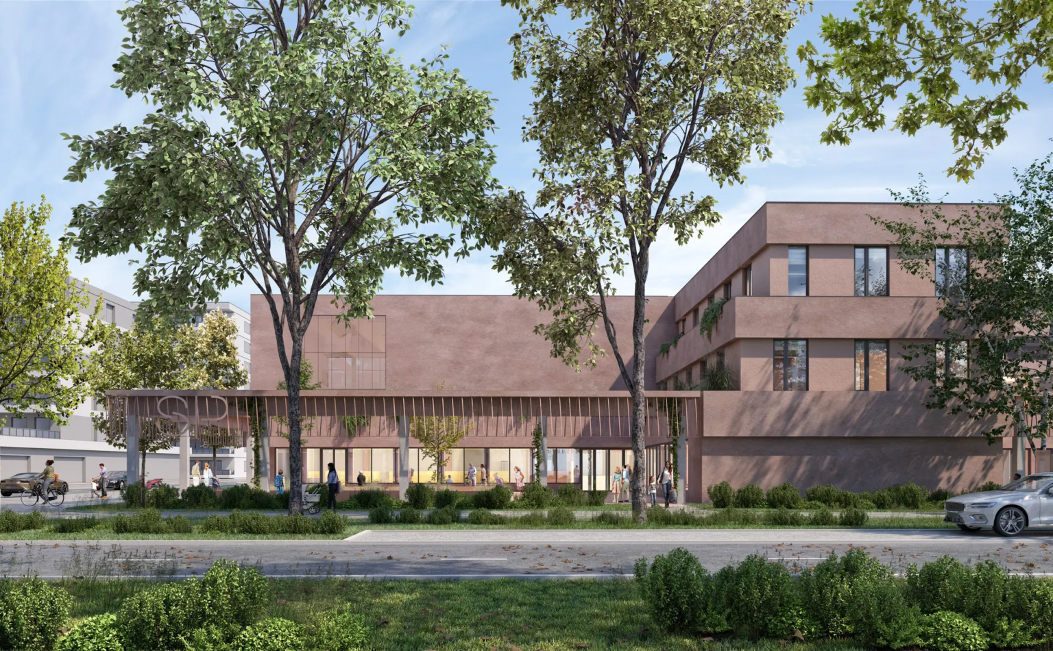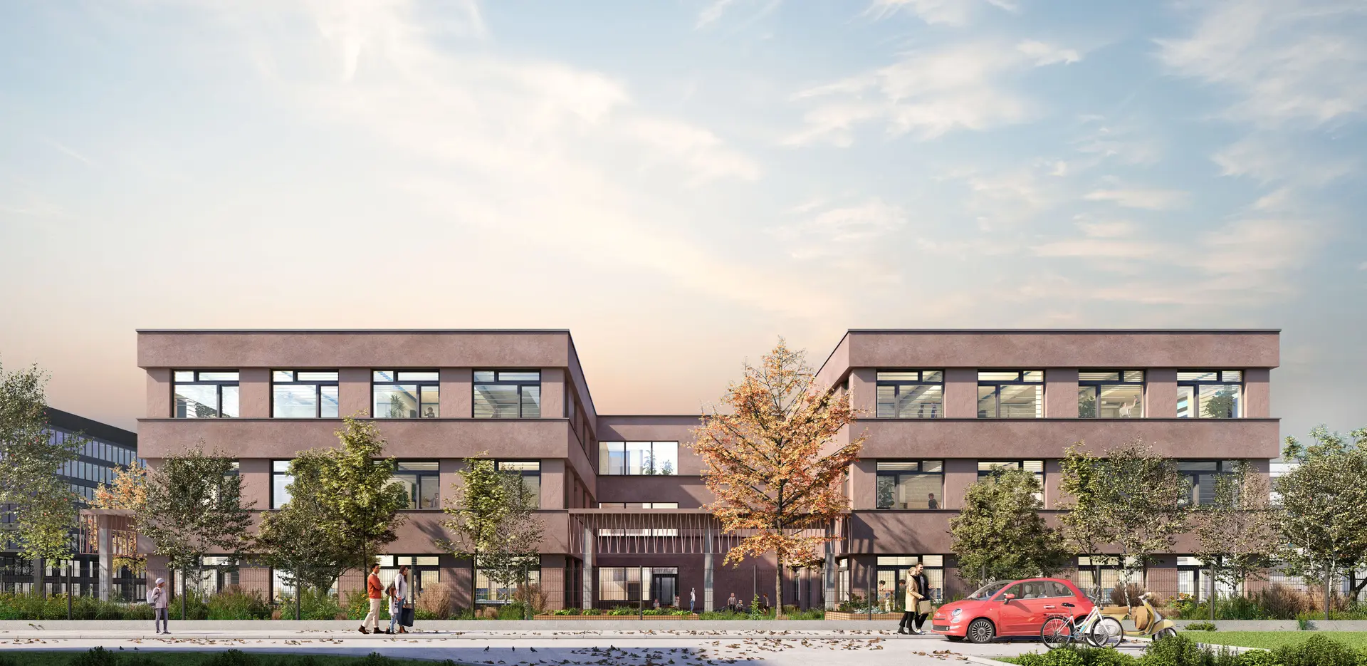 Typ budynku: dwupiętrowy obiekt z salami lekcyjnymi, pracowniami, stołówką, biblioteką i przestrzeniami sportowymi