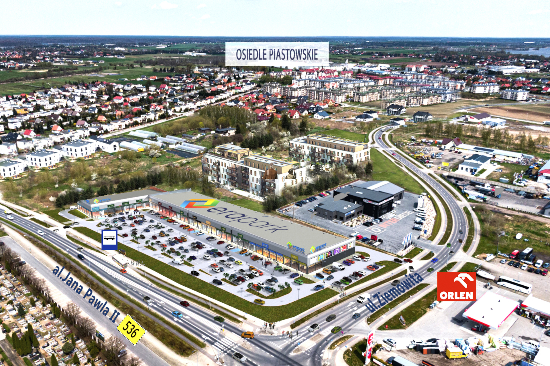 Obiekt posiada 20 lokali handlowo-usługowych, a parking dla klientów liczy 230 miejsc.