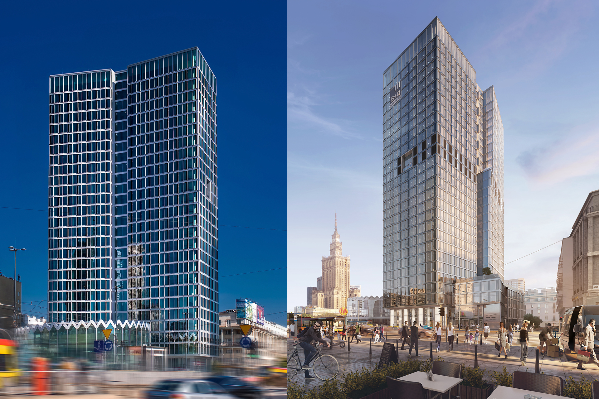 Widok Towers to jeden z najbardziej prestiżowych biurowców w centrum Warszawy, zlokalizowany u zbiegu Alei Jerozolimskich i ulicy Marszałkowskiej. Budynek stanowi ikonę nowoczesnej architektury miejskiej, łącząc funkcjonalność z elegancją i dbałością o środowisko.